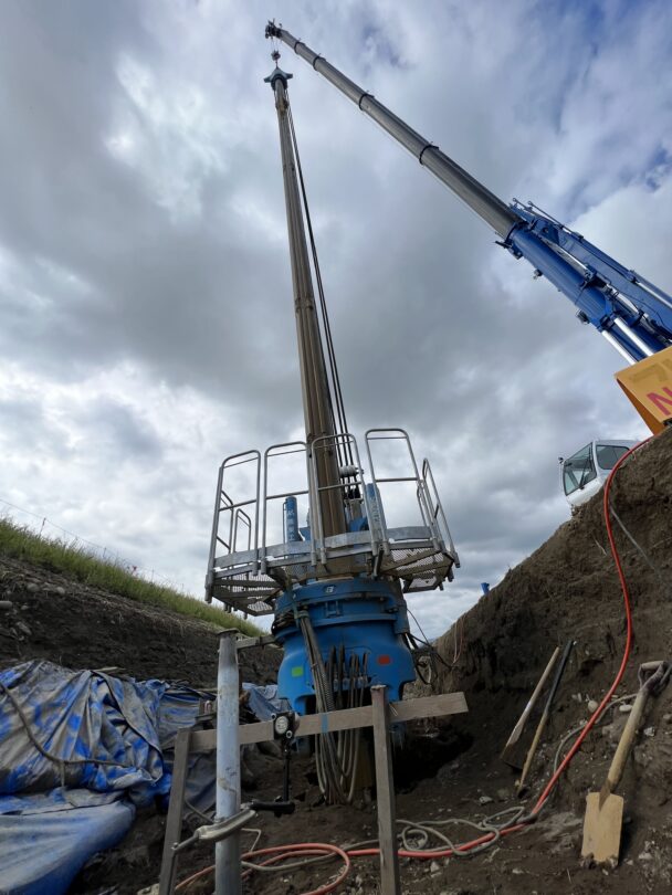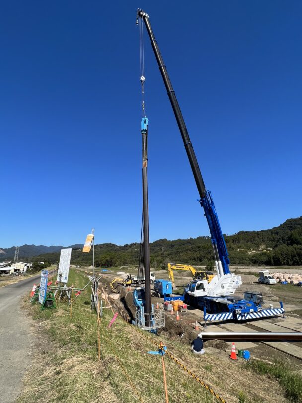 2022年9月~10月にかけてハット形鋼矢板(25H)L=19.5~20.5m N=130をオーガ併用圧入